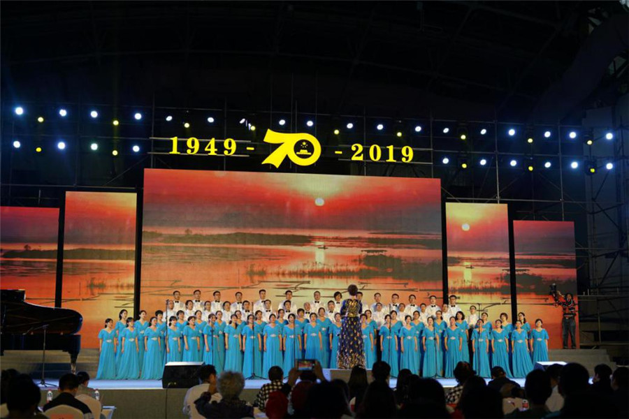 比赛现场,各支参赛队伍先后合唱《长江之歌》、《我和我的祖国》、《保卫黄河》、《爱我中华》等经典曲目,共庆新中国成立70周年。吃瓜网站