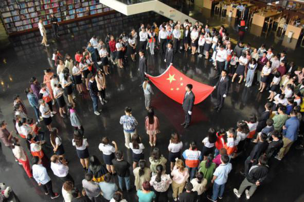 师生表示了欢迎。实习期间各部门分工明确,工作井然有序。特藏部古籍修复组的同学们在老师的指导下,通过建档、拆分编页、修补和压平(干燥)等工序,用三周时间修复了《殷氏家谱》;读者服务部的同学们通过“组织读者沙龙,举办阅读活动”、“组织管理志愿者”、“新媒体平台推送”等具体工作,践行服务读者的理念。本次实习恰逢新中国成立70周年,同学们也有幸参与了四川省图书馆庆祝新中国成立70周年诗歌朗诵快闪活动——“我爱你中国”,实践教育与爱国教育并驾齐驱。