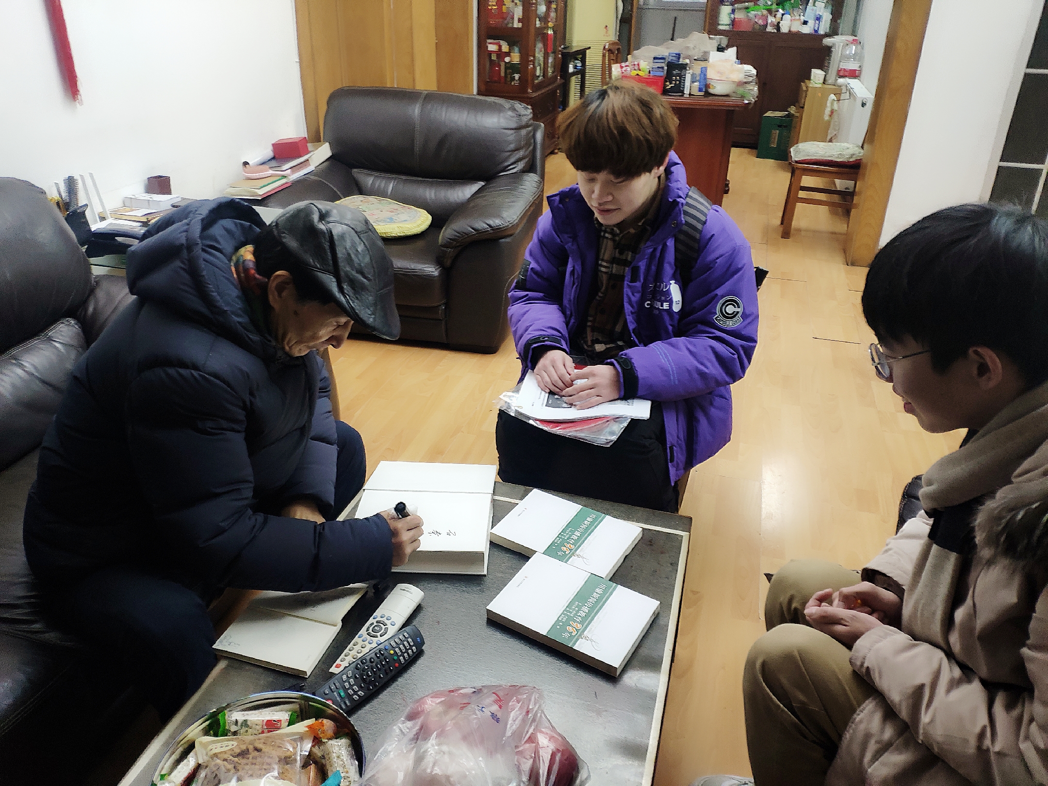 1月2日10点,院团委学生会杨宜霖、石秦一、伊靳涛三名同学来到原新闻学院院长邱沛篁教授家中。年已80岁高龄的邱老师,精神矍铄,祥和的笑意让人倍感温暖亲切。邱老师向同学们询问了新闻系本科教学现况,并介绍了新闻系级学科发展历程。邱老师还将自己的三本专著赠送给了同学们,鼓励同学们在新时代保持初心,做有担当的新闻人。