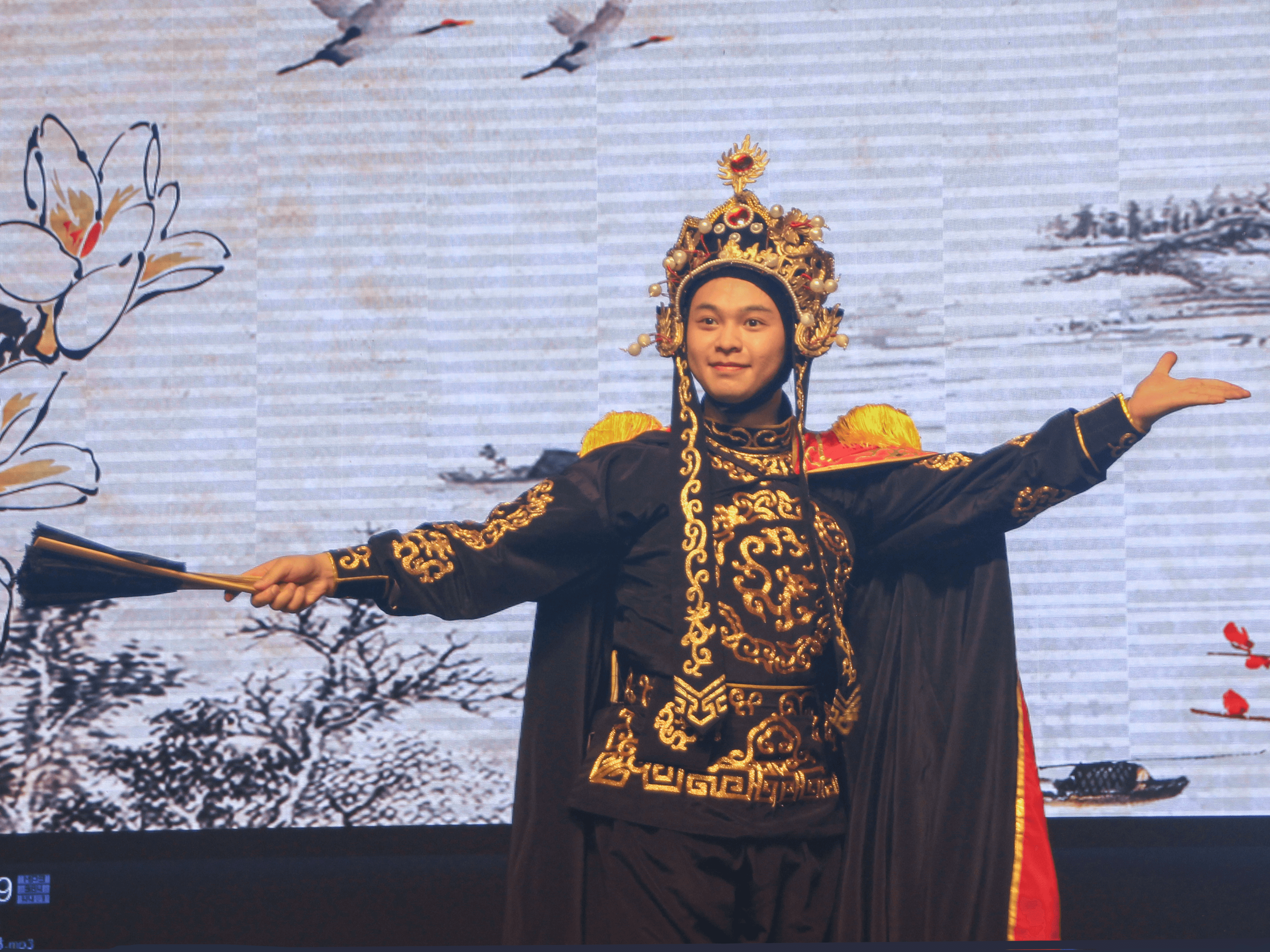 戏曲协会的会长,我认为在大学里宣传戏曲文化十分重要,能为戏曲文化的传播尽一份力,我也感到十分荣幸。希望中国传统戏曲文化更好、更完整地传承下去。”