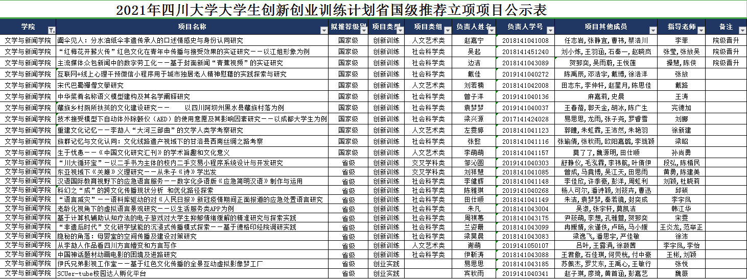 根据《国家级大学生创新创业训练计划管理办法》(教高函[2019]13号)、《教育部高等教育司关于报送2021年国家级大学生创新创业训练计划立项项目的通知》和《四川省教育厅办公室关于开展2021年省级大学生创新创业训练计划立项工作的通知》,我校于四月份启动2021年大创中期检查和省国级推荐立项项目评审工作。