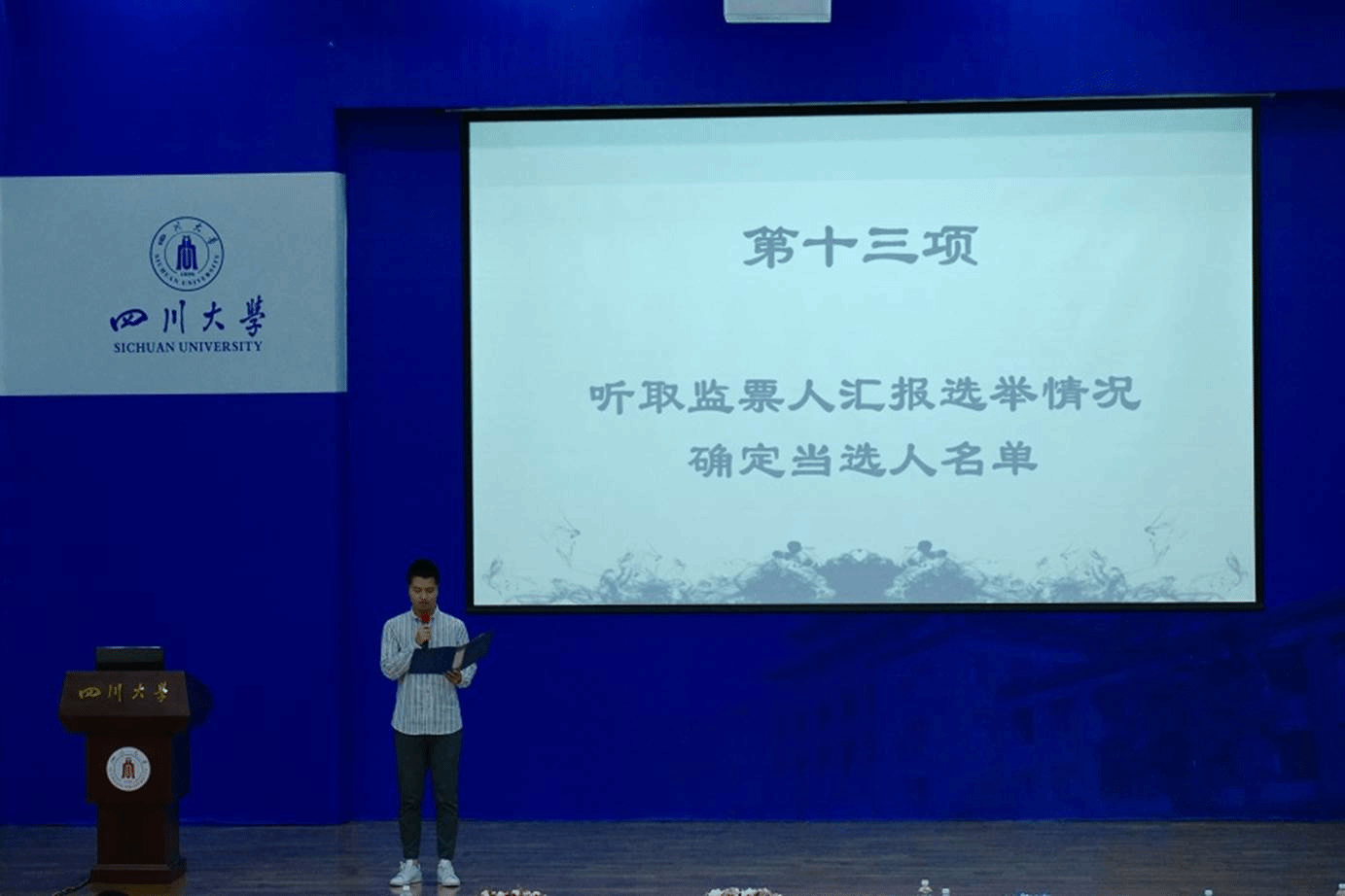 学生会副主席向宇歌宣读代表资格审查报告