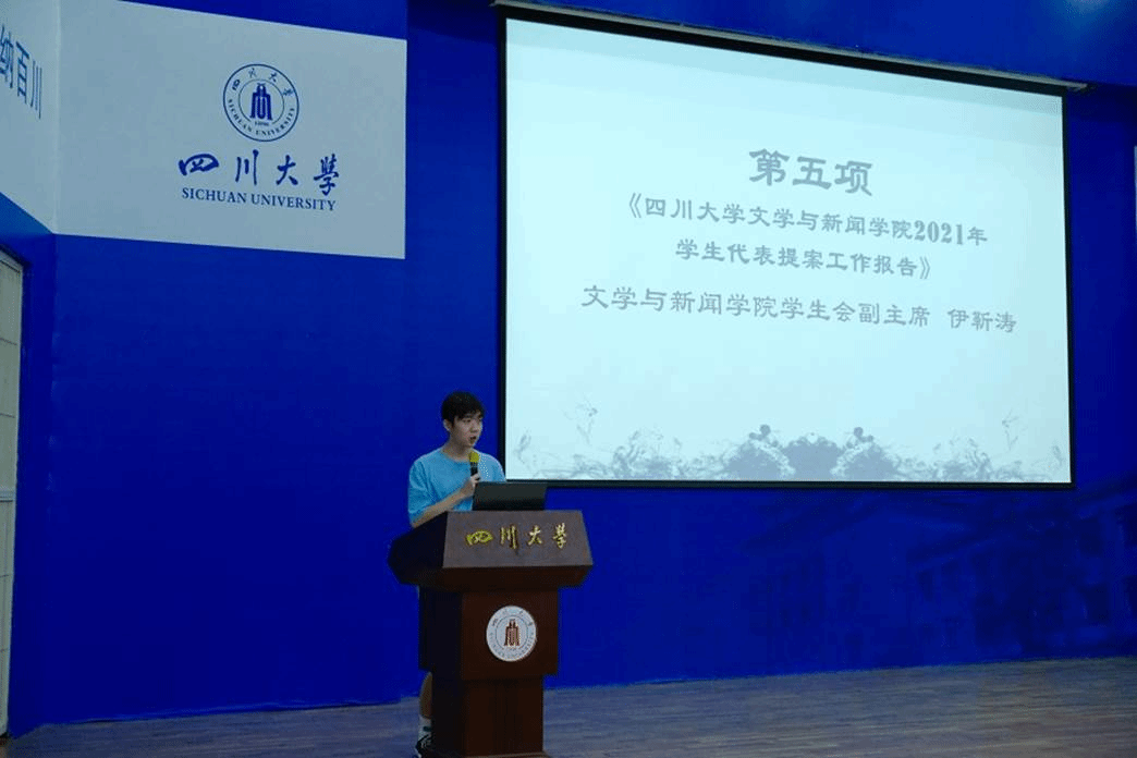 学生会副主席伊靳涛作学生代表提案工作报告