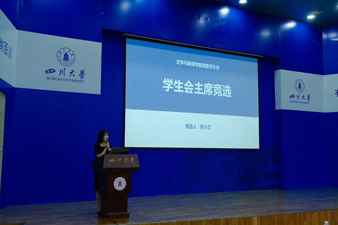 学生会主席候选人张小艾进行学生会主席竞选演讲
