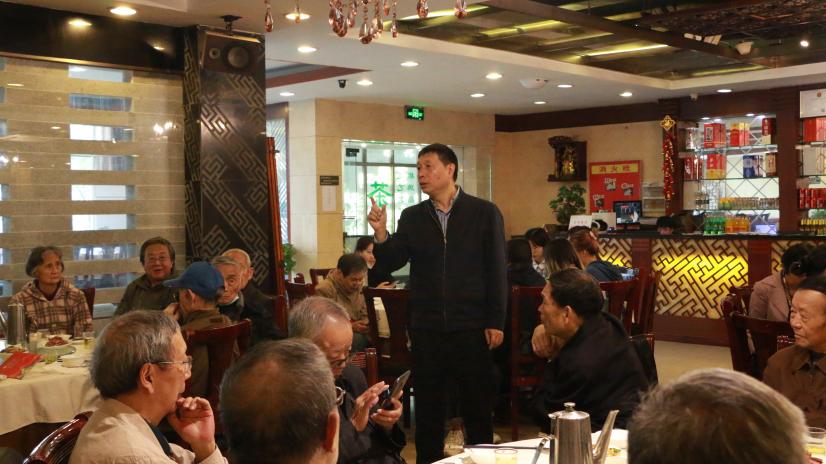 于望江校区北苑餐厅二楼举行离退休教师重阳节聚会活动。相机镜头用一张合影,为老教师们记录下了这一天重聚的笑容与欢乐时光。