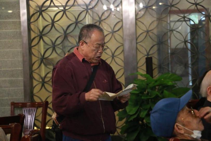 这是2020年新冠疫情后,老教师们在重阳节的第一次聚会,大家个个笑容满面、情绪饱满。学院工会主席、院关工委副主任罗梅老师和院长助理梁小梅老师在现场忙前忙后,热情慰问并照顾在场的离退休教师。本次重阳节活动共有50余位退休教师参加,其中不乏许多已步入耄耋之年的老教师。原中文系的卢延权老师已有91岁高龄,他在家人的陪同下前来参加本次聚会,卢老师平时很少出门,但只要是与昔日同事重聚的活动他都会尽量参与。虽然卢老师平时不使用手机上网,但他会通过与在校老师保持联系来了解学院的动态,他表示很高兴能参加此次活动。