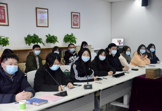 2019级汉语言文学拔尖班班长宋晨对班级过去一学期的学习生活情况作汇报。他在发言中说,进入大三学年的秋季学期后,班级同学的学习生活进入了平稳期与拔高期,也取得了一定的阶段性成果。在学业方面,大三秋季学期班级多位同学绩点达到3.8以上,班级总体平均分达到了90分。在科研方面,同学们依托学院举办的“第一届本科生创新拔尖人才学术论坛”“一流专业、拔尖计划、强基计划学生学术创新论文征文”等活动开展交流学习,并得到“杨明照古籍特藏室”等学习资源支持。据宋晨同学介绍,拔尖班全体同学都参与了“大学生创新创业计划”的申报活动,做到了人手均有立项。同学们在导师的带领下,立志在学术的道路上不断探索。在社会实践方面,同学们参加了“从师擎旗,青阳承颢”慰问退休教职工志愿活动、寒假托管班级服务志愿活动、“五心支部”寒假调研等实践活动,在平衡课业的情况下积极拓展自身综合素质。