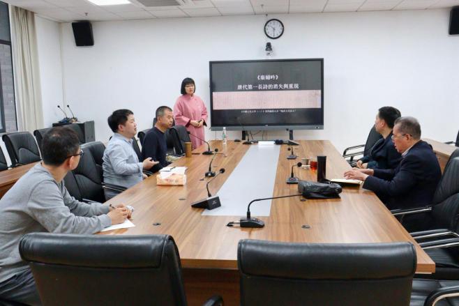 党委书记古立峰教授、讲席教授王兆鹏教授和刘亚丁教授、李果副教授、张朝富副教授、朱姝副教授参加本次讨论会,并就参赛准备内容与戴莹莹副研究员交流并提出建议。会议在江安校区文科楼一区311会议室举行,由吃瓜网站
