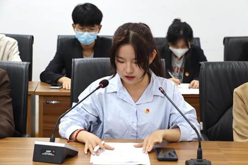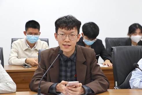 2020级新闻学专业本科生王尚在发言中从共青团员在担当民族复兴重任中发挥重要作用着眼,谈了自己的感悟:“我们作为共产党的后备军,应该坚持与时俱进,严格要求自己。我们须认真领会总书记重要讲话的丰富内涵和实践要求,做好知行合一,勇毅前进,从而凝聚青年力量。”