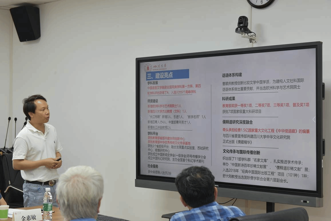 发展规划处贺喆南副处长,各建设责任单位部分领导班子成员及各单位学科联络人也列席了会议。会议由学科群首席专家曹顺庆教授主持。