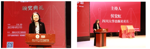 出版社社长侯宏虹主持颁奖典礼