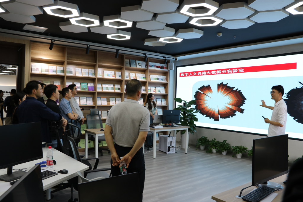 参会代表参观数字人文典籍大数据分实验室