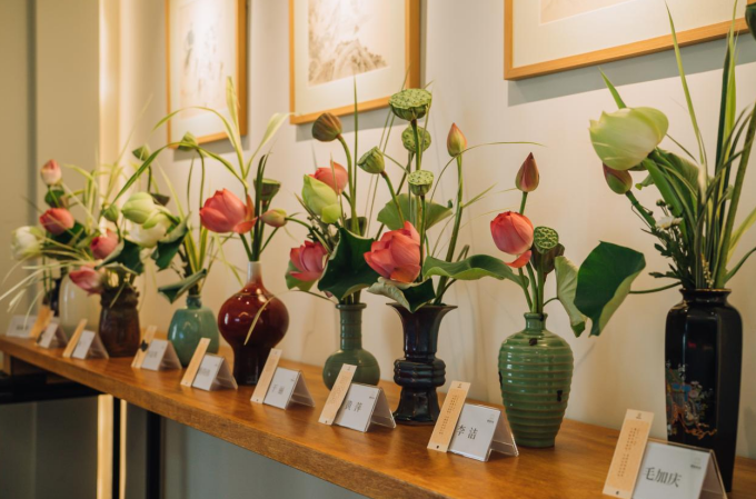 北堂种萱草,花开能见人。8月8日当天恰逢立秋,在中国民间有插花的习俗。座谈会结束后,还举行了中式插花体验活动。活动邀请花艺师讲解插花艺术和技巧,一个个充满创意的精美插花扇面,一身身传统韵味十足、别致典雅的汉服旗袍,一张张灿烂的笑靥如花,在展示中华优秀传统文化的同时,又体现了新时代成都人民的自信与豪迈。