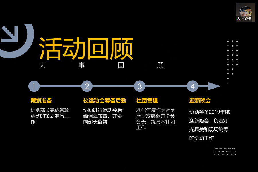 学生会创业就业促进部副部长冉媛婧进行活动回顾