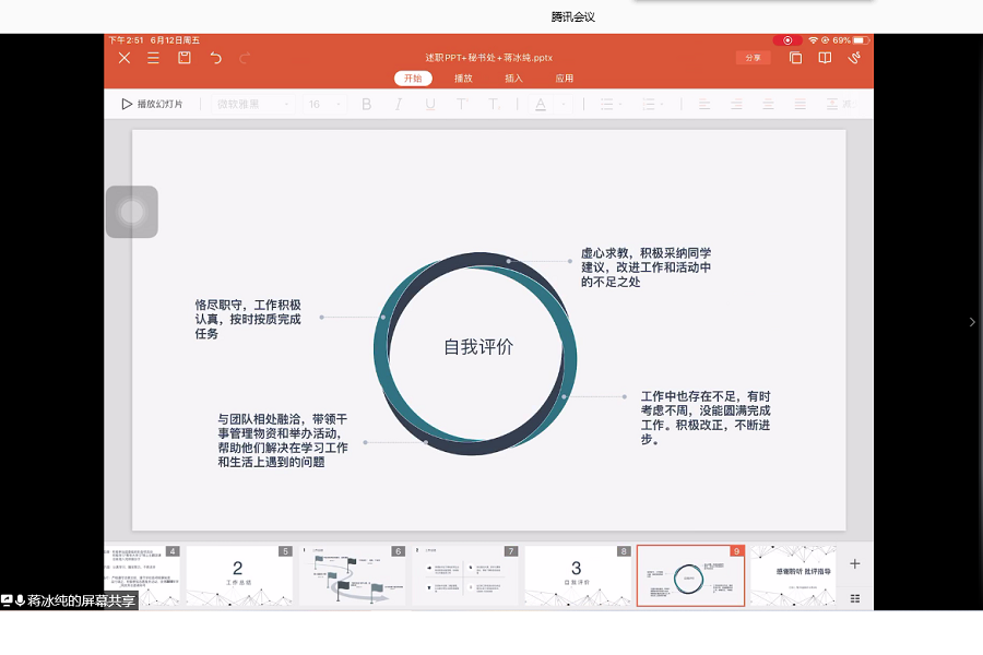 学生会秘书处副秘书长蒋冰纯进行自我评价