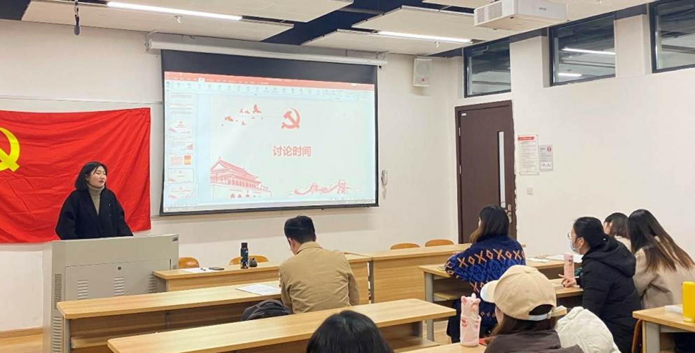 领学结束后,支部成员踊跃发言,纷纷分享心得感悟。杨盛果同志表示,此次全会的许多新提法、新概念都需要深入学习,其中,“两个确立”即是对“两个维护”的进一步补充;谭惠静同学就如何将理论外化于实践的问题分享了自己的观点,冯爽同学结合自己的职业规划谈道:“一直以来我的职业理想是成为一名人民教师,我希望以后在教学岗位上,把党的光辉历程、伟大成就讲好讲透,把党的优良作风、光荣传统传递给下一代,引导广大青少年厚植爱党爱国爱社会主义情怀,为社会主义现代化建设、为民族复兴培养更多敢担当、勇担当、善作为的时代新人。”