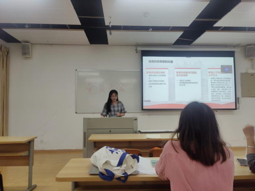 接下来,八位发展对象(含上一期发展对象谭惠静同学)分别以党史、时政等学习专题,向支部成员进行汇报。发展对象们精心准备、认真展示,自身政治理论水平得到提升,也使支部成员多角度参与到政治学习中。其中,王铭翌同学以“全面推进乡村振兴”为专题进行汇报,她从具体实例出发,介绍了乡村振兴战略的背景、目标和措施,围绕“我们作为青年学子可以为乡村振兴做什么”展开了深入讨论。何宜珈同学选择“秉承先驱遗志,共筑复兴伟业”的主题进行分享,她结合党史,带领大家回顾了习近平总书记在庆祝辛亥革命110周年大会上的讲话,并分享了学习体悟。其他几位发展对象也围绕创新扶贫方式、反腐倡廉、两会精神学习等主题进行汇报。汇报结束后,支部党员对八位发展对象的汇报进行评分。按照《吃瓜网站