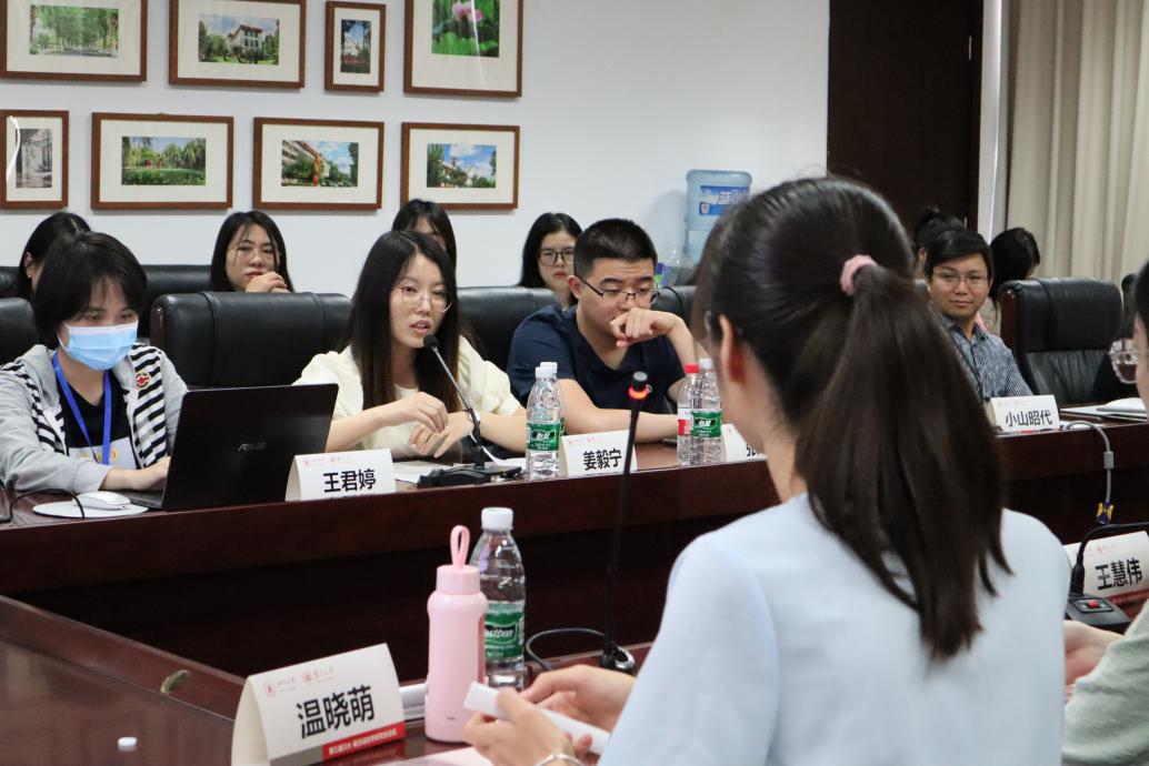 2017级本科生冯熠、王聪也分别以重庆丰都话、湖南益阳话中的语言现象作为选题进行汇报。2020级研究生黄艺丹的论文汇报引起了现场师生的热烈讨论,大家就“南方方言‘么’类疑问代词”的历史溯源和南北差异进行研讨,这让黄艺丹受益匪浅,“此前我只是知道自己论文有哪些问题,但没有合适的解决方法,这次论坛收集到的建议给了我很多新的启发,重新有了新的修改方向。”
