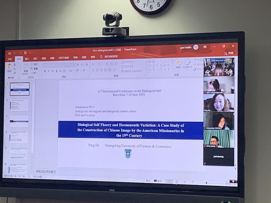 副院长胡易容教授、广东财经大学杜萍副教授分别对论坛发言进行评议,认为此次论坛围绕对话自我、变异学、跨文化传播等核心议题进行了富有成效的讨论。在讨论环节,线上线下与会嘉宾围绕“对话自我理论与变异学”这一话题进行了激烈讨论。来自西班牙拉曼·鲁尔大学的学者玛丽娜·加西亚莫兰特(Marina García-Morante)对此次论坛的议题十分感兴趣,并围绕对话自我理论与变异学理论两者的联系与区别展开讨论。