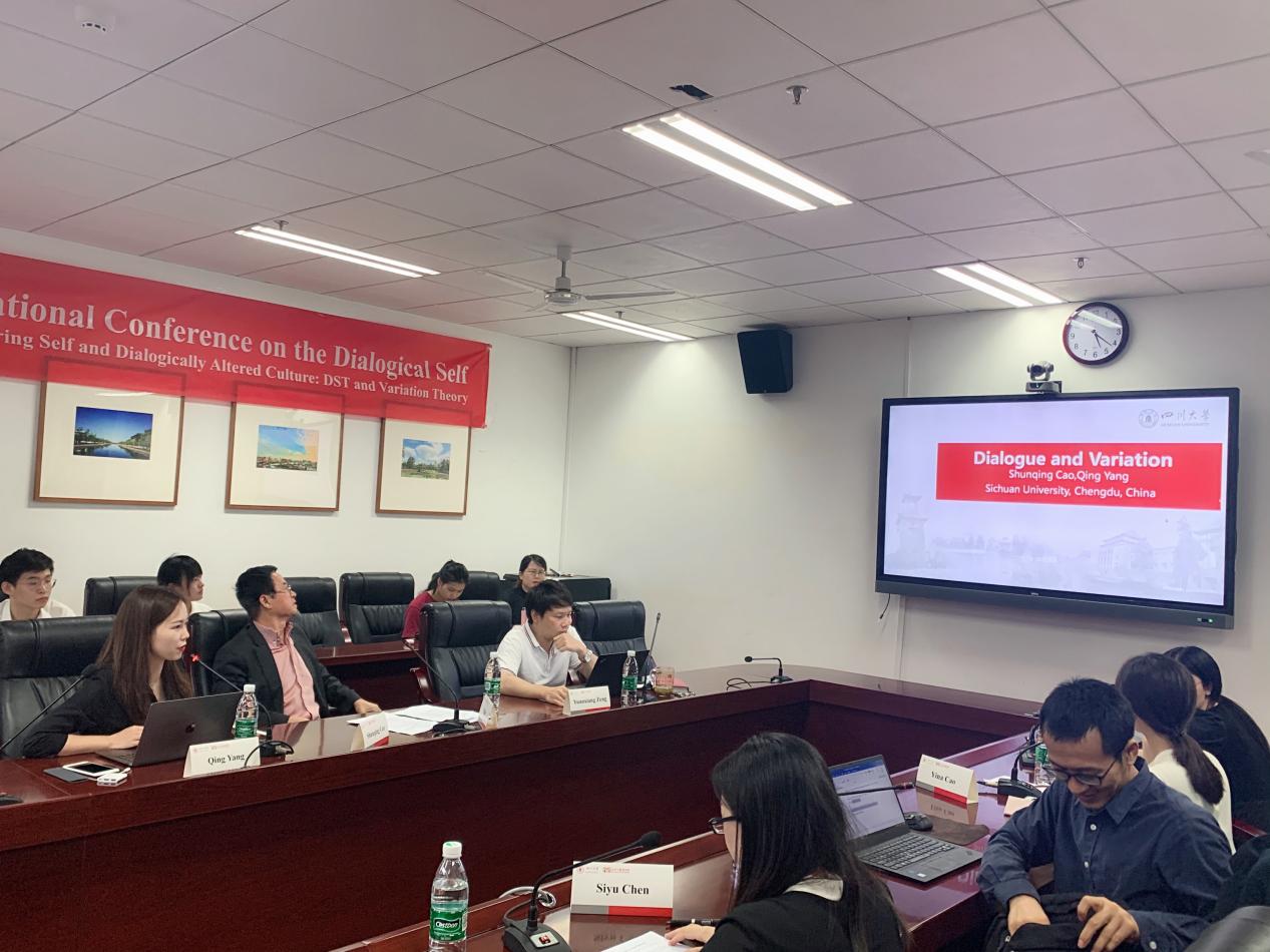 论坛设两组发言,两次集中讨论。首先由我校曹顺庆教授、杨清博士以“对话与变异”为题进行主题汇报。曹顺庆教授、杨清博士认为,正是因为建立在差异性基础之上的他者性与他异性的存在,才能实现对话自我,否则就没有对话的必要。无论是赫尔曼斯所说的,对话自我理论不仅关注个体之间、群体之间、自我内部;还是文化之间的对话性关系,因为有他者或自我中的他者的参与,或多或少都会吸纳他者对自我有益的内容,从而实现对话所带来的创新性。其与曹顺庆教授所提出的“变异学”遥相呼应,两种理论都强调异质性、动态性和多样性。这构成了此次特邀论坛国际对话的前提。