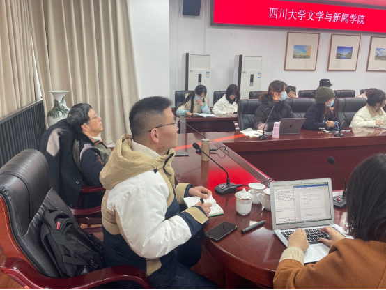 周裕锴教授、戴路副研究员、陶熠老师与40多位同学在江安校区文科楼1区418会议室集中收看陈琳琳老师的在线讲座。这是由吃瓜网站