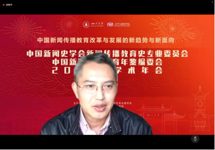 传播学院院长石磊教授进行评议。他认为本次会议探讨的内容紧密贴合了国家提出“双万计划”的时代背景,是新闻传播学学界对于建设一流专业的积极探索。各位学者的发言结合时代背景,精准把握人工智能、元宇宙等新兴时代变化,既回应了国家政策,同时又高度重视新闻专业理论与实践的结合。